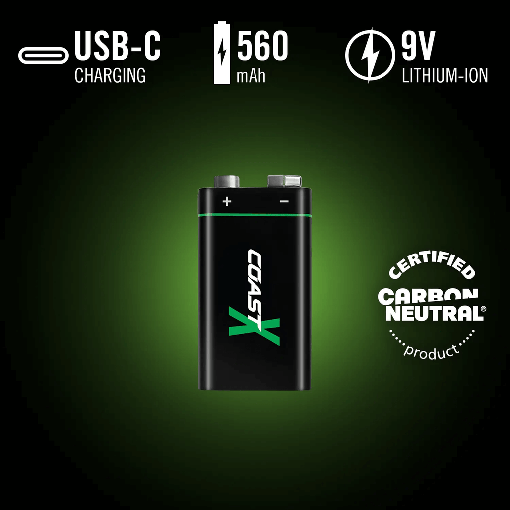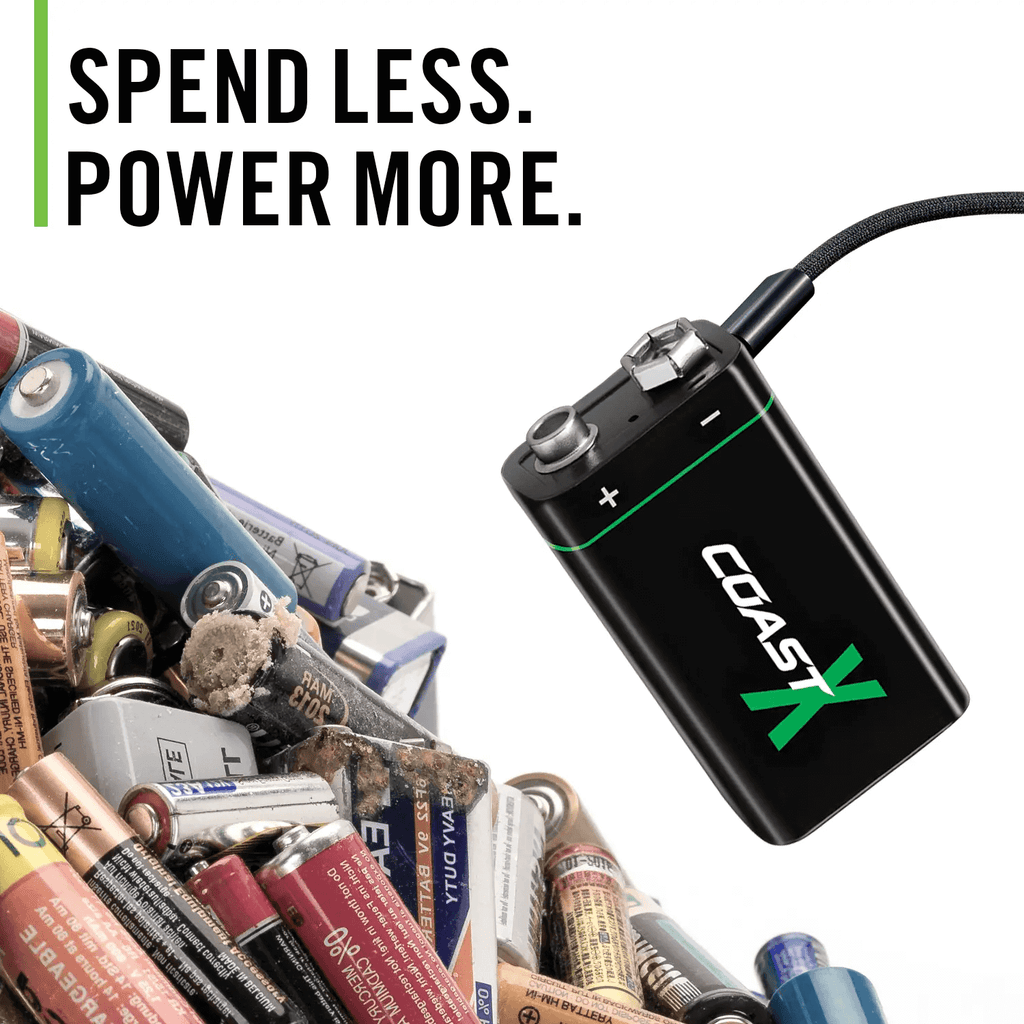 Tired of 9V batteries dying at the worst possible moment—like when your smoke alarm starts chirping at 2am or your wireless gear cuts out mid-use? With the Coast 9V Rechargeable Battery 2-Pack, you get reliable, rechargeable power that saves you money and reduces battery waste. Each purchase includes two COAST ZITHION-X® 9V lithium rechargeable batteries plus a handy USB-C 2-split charging cable, so you can keep both batteries topped up and ready to go with a single USB-C port.